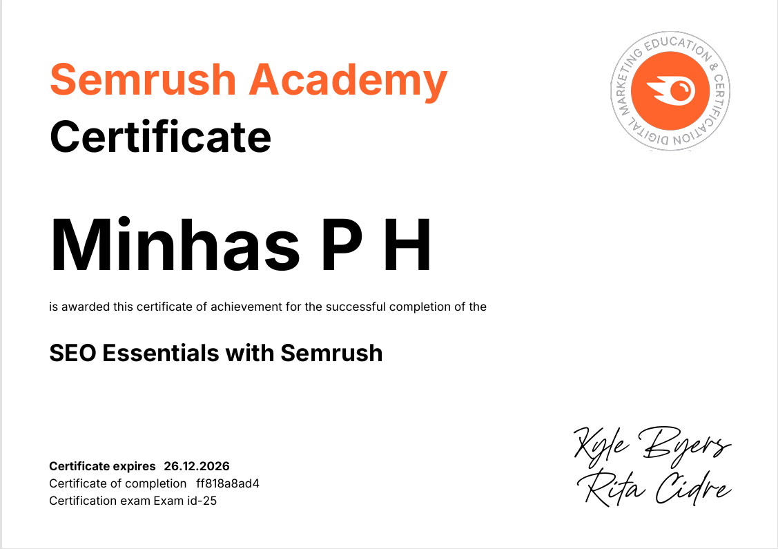 I am Minhas Hussain, who has experience in real sales and offline marketing, and have worked in different companies. I learned digital marketing at Dotin Digital Marketing Academy in 2025. I have been passionate about business since my childhood. In this internet era, businesses need a digital presence, and it is necessary. So I learned digital marketing skills. With a combination of both sales skills, offline and online marketing, here is your best freelance digital marketer in Thrissur. I can help your business brand get visible and promoted on all social media platforms and on Google. My focus is simple: real leads, real growth, and real results. “Let’s build your brand in the right way.”